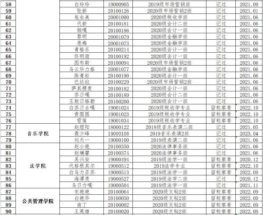 关于对额仁钦等95名学生撤销违纪处分的决定