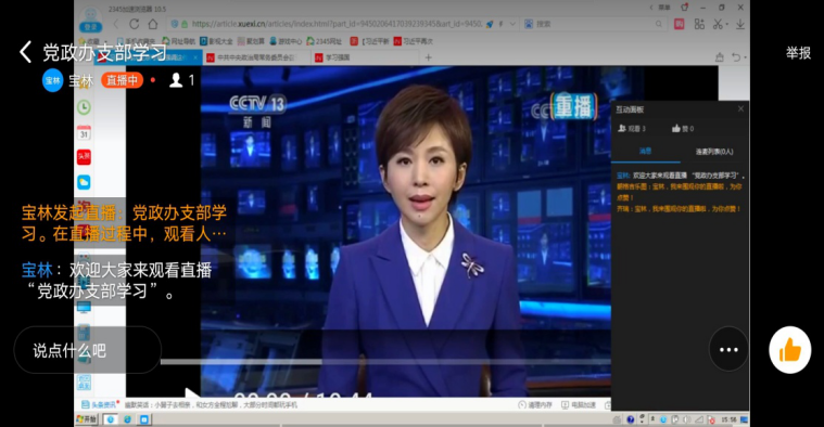 3月5日下午,在疫情防控特殊时期,为发挥党组织和党员干部作用,充分调动基层党组织战斗堡垒作用和广大党员先锋模范作用,党政办支部通过线上视频会议平台,开展了以“抗击疫情,争当先锋”为主题的党日活动,开启新学期第一次集中学习。