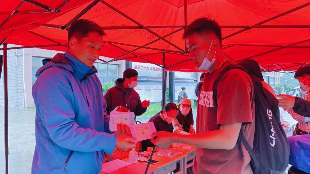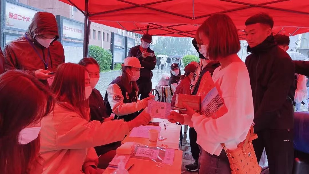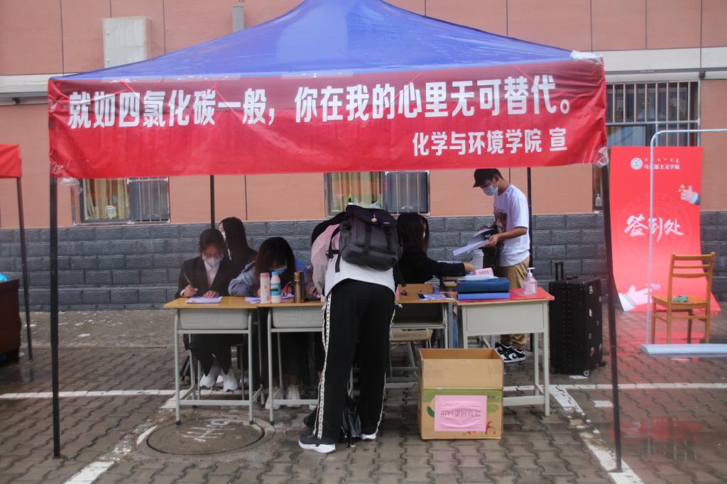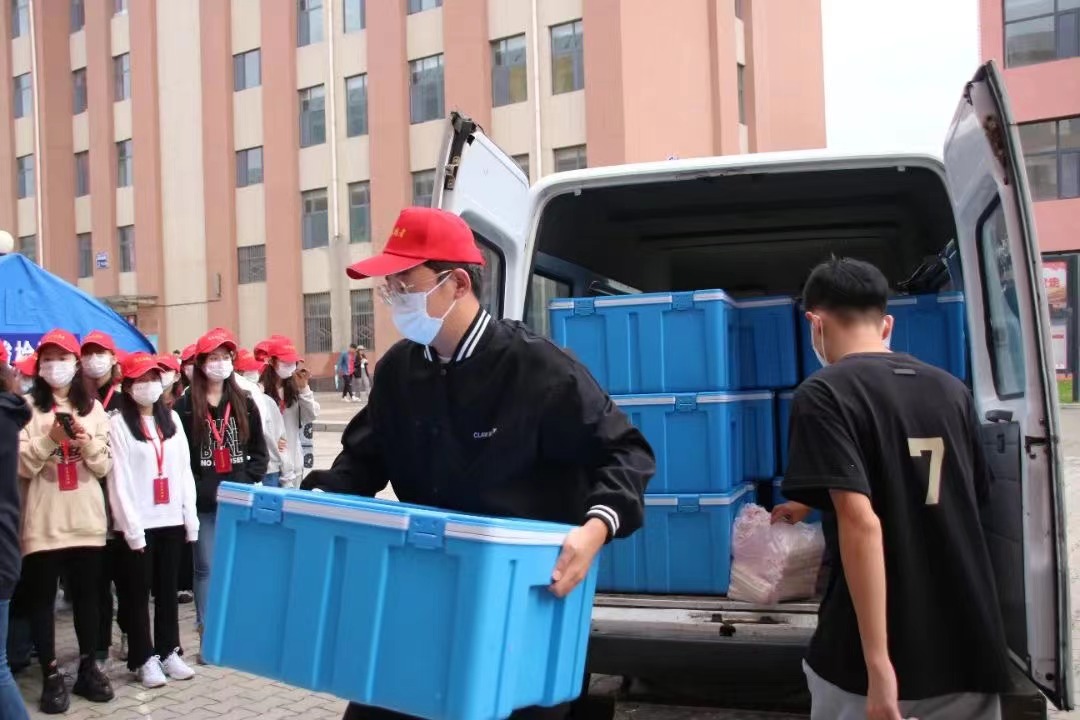 为配合防疫要求,报到当晚,学校组织44名教工党员志愿者、111名学生党员志愿者为大一新生送餐,保障同学们的日常生活安全有序进行。