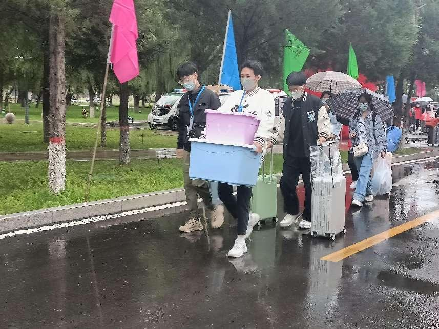 早上六时,鸭脖迎新工作正式开始。校领导莅临现场关怀备至,视察迎新情况,慰问工作人员,询问学生的报到、住宿等情况。学校组织志愿者前往呼和浩特东站迎接新生,志愿者在车站前严阵以待,为同学们搬运行李、提供帮助。为确保迎新工作有序开展,学校严格落实疫情防控要求,周密部署,严格校门管控,将保障学生健康安全放在了首位。学校出于疫情防控的需要,今年明确规定,外来车辆和学生家长一律禁止入内。为此,学校组织15辆爱心摆渡车在两个西门接送学生,帮助同学们将行李由校门运至报到点。搬行李、打雨伞、找宿舍,忙忙碌碌的“红马甲”志愿者定点引导新入学同学完成报到事宜。“志愿红”“爱心车”,温暖了微冷的初秋,打通报到最后一公里,也绘就了校园最美的风景线。