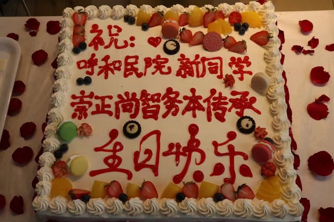 “祝你生日快乐,祝你生日快乐......”在新生报到这一天,学校为来自7个学院8月28日报到当天过生日的9名同学制作了生日蛋糕。生日蛋糕为长48cm*宽48cm的正方形蛋糕,上面还写着学校对新入学学子的美好祝福。各相关学院的领导和老师们共同为过生日的同学切蛋糕、送祝福。学校以送生日蛋糕这样一个甜蜜的形式,将崇正、尚智、务本、传承的校训传递给初入校门的同学们,表达了学校最诚挚的祝福,最深切的期待。