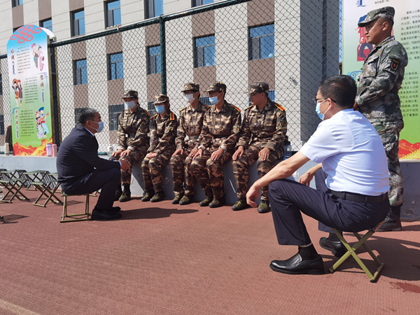 格日乐图书记一行与承训教官、各连连长、参训及观训学生亲切交流慰问,详细了解训练及学生们的身体情况,并在现场观看了训练。