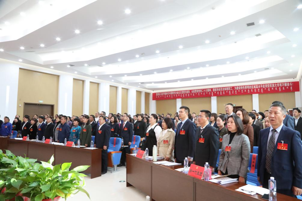 报告指出,过去三年,学校坚持以习近平新时代中国特色社会主义思想为指导,深入贯彻落实党的十九届历次全会精神和党的二十大精神,全面贯彻落实习近平总书记关于教育的重要论述、关于加强和改进民族工作的重要思想和对内蒙古重要讲话重要指示精神,坚持社会主义办学方向,全面落实立德树人根本任务,团结带领广大师生员工围绕高质量发展不懈奋斗,在党建和民族工作、人才培养、学科建设、科学研究、师资队伍建设、学生管理与服务工作、综合保障等方面取得了新成绩,事业发展迈上了新台阶。尤其是今年以来,在深入开展主题教育、服务自治区两件大事、破解人员不足难题、推动毕业生就业创业等方面的工作取得了明显的成效。