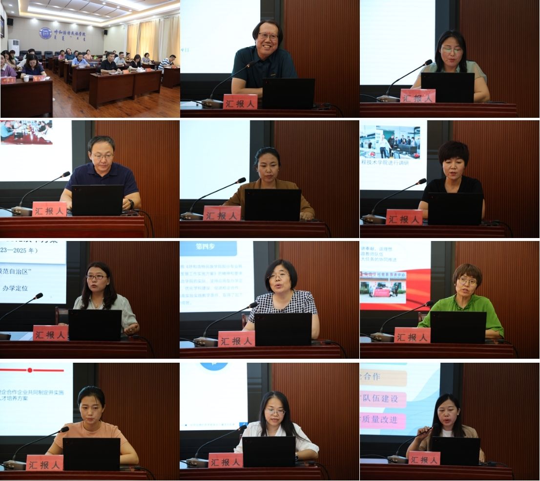 会上,转型专业建设成效(中期检查)校内评审专家组听取12个转型专业负责人就各自转型发展专业建设成效,以及面临的难题、下一步的工作思路和举措等方面的汇报,现场做了评分。