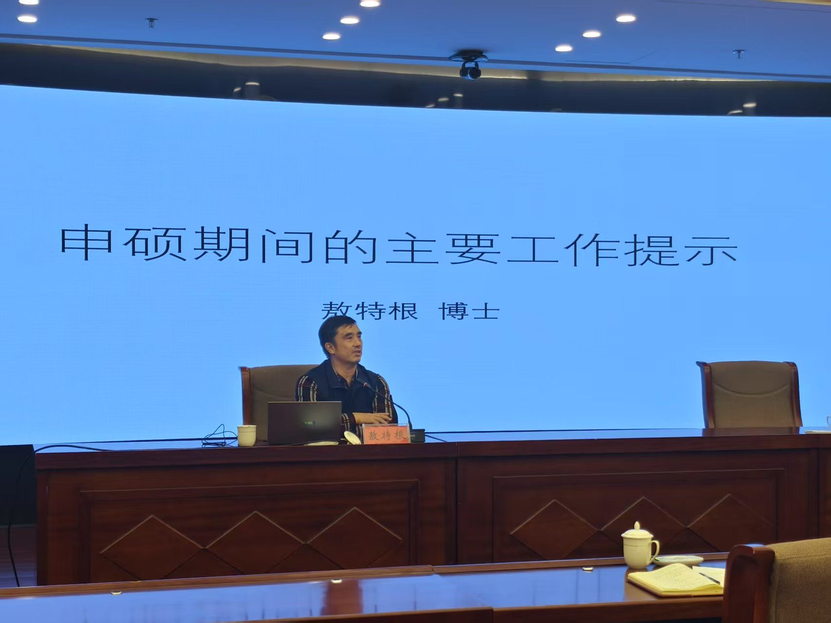 12月23日,鸭脖特邀呼伦贝尔学院党委委员、副院长敖特根,围绕“申硕期间主要工作”作专题讲座。