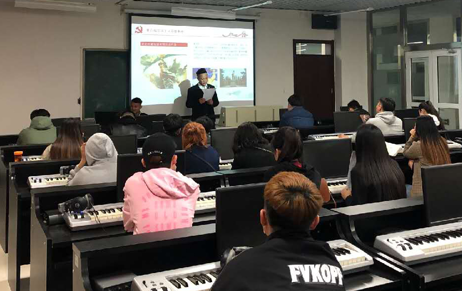 清明节凝结着中华民族的民族精神和民族情感,承载着中华民族的文化血脉和思想精华。为深切缅怀革命烈士的丰功伟绩和崇高精神,弘扬传承爱国主义精神,进一步增强学生的使命感与责任感,音乐系于2019年4月4日晚7时,在综合楼403组织开展了清明祭英烈活动。活动由专职辅导员赛娜老师主持,团总支书记张超老师、学生党员、学生骨干约四十余人参加。