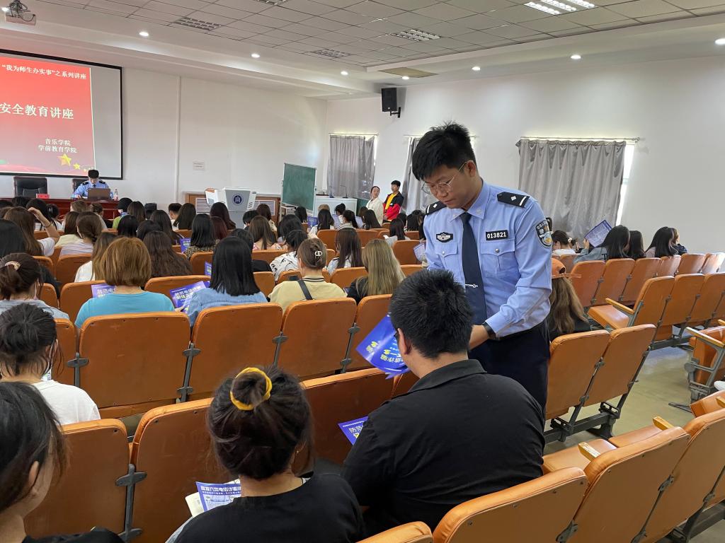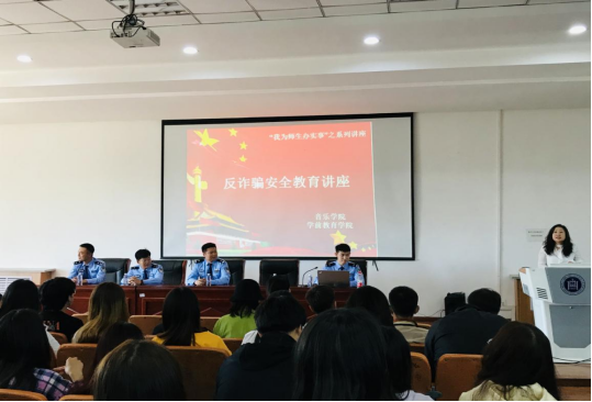 根据学校党史学习教育工作决策部署,进一步深化落实“我为师生办实事”实践活动,全面加强学生安全管理教育工作,音乐学院、学前教育学院于6月3日下午邀请到了呼和浩特市公安局反诈中心张巍、李鑫警官一行来鸭脖开展反诈骗安全教育讲座。