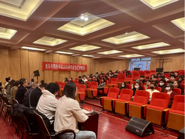 为全力推动2025届毕业生高质量充分就业,音乐与舞蹈学院于3月13日晚在音乐与舞蹈学院多功能厅召开2025届毕业生就业工作推进会。学院全体班子成员、各科室负责人、2025届毕业班班主任及全体学生参加座谈会,学院党总支副书记白书记主持会议。