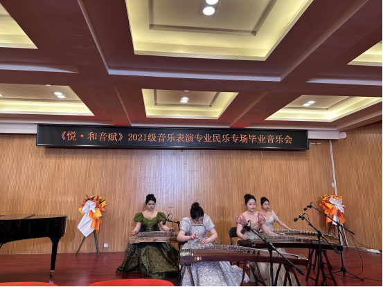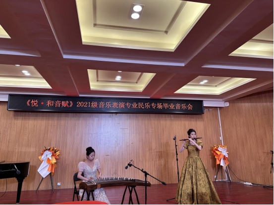 4月14日下午,音乐与舞蹈学院在音乐楼多功能厅举办“悦·和音赋”2021级音乐表演古筝、竹笛专业毕业音乐会,学院教职工、学生亲友、在校学生到场观看演出。