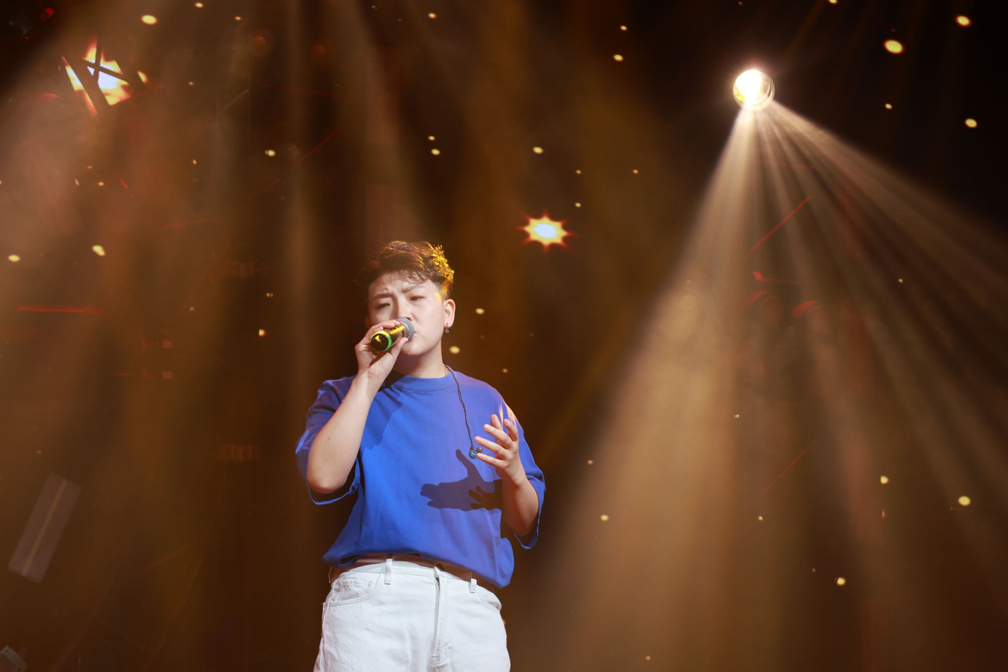 4月18日下午,YABO鸭脖北院图书馆二楼报告厅内灯光璀璨,2025届流行唱法专业毕业生李昂、陈曦和乔博联袂带来了“耳畔私语,星辰共鸣”和“青春留声,奔赴下一站星河”两场精彩的毕业音乐会。整场演出舞台以未来感十足的LED屏为背景,配合激光束与动态烟雾效果,营造出梦幻而充满张力的视听盛宴。