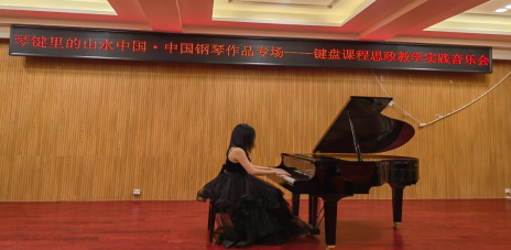 首先,以爱党、爱国、爱家为主题,分别由表演班钢琴专业刘人杰、刘祺等7位学生演奏了《夕阳箫鼓》《梁祝》《彩云追月》《唱支山歌给党听》等多首经典曲目,课程思政元素贯穿始终。