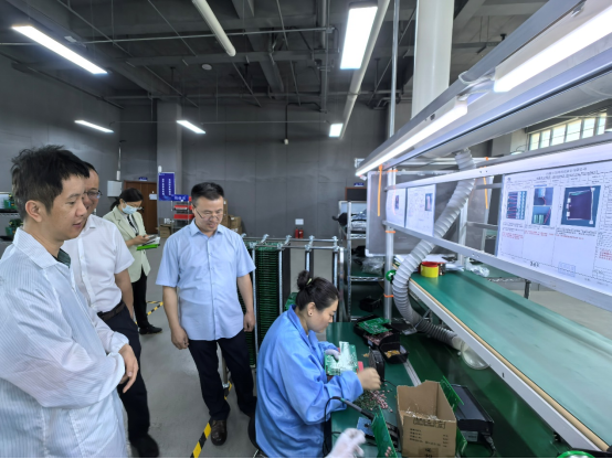 额尔敦布和一行在显鸿科技股份有限公司产品展示区域和生产车间进行了参观,公司董事长吴葵生热情接待并介绍了公司基本情况、相关科技成果以及前沿产品等。