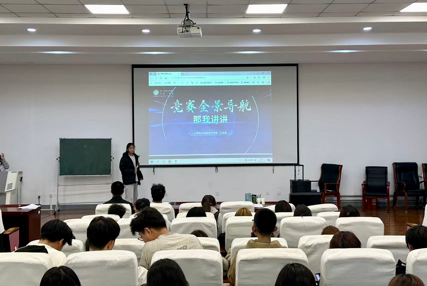 为帮助学生明晰AI与机器人领域竞赛赛道、掌握备赛核心技巧,搭建高效的经验交流平台,11月3日晚,由学院团总支主办、AI机器人实践社团承办的“智竞未来,赋能启航—AI与机器人专业竞赛指南”宣讲会在旧美术楼407报告厅成功举办。宣讲会由学院AI机器人实践社团社长潘滢如主持,全体2025级学生及社团成员参加。