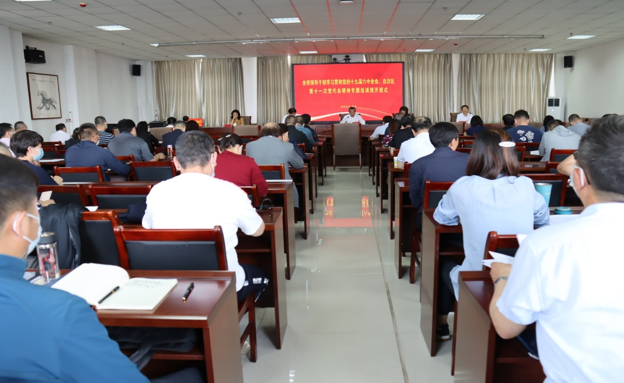 为深入学习贯彻党的十九届六中全会精神和自治区第十一次党代会精神,更好地落实以史为鉴、开创未来的重要要求,深刻认识“两个确立”的决定性意义,大力弘扬伟大建党精神,进一步提升干部队伍服务学校中心大局、努力担当作为的素质能力,5月28日—6月6日,学校举办了领导干部学习贯彻党的十九届六中全会精神、自治区第十一次党代会精神专题培训班,全校120余名处级以上干部参加了培训。