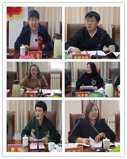 座谈会上,高喜天副校长对额尔登布拉格副书记一行来校考察交流表示欢迎,并介绍了学校基本概况、学科建设、人才引培工作情况以及党建工作的特色亮点。他表示,两所学校关系源远流长,希望双方加强交流,加深友谊,并代表学校诚挚邀请内蒙古民族幼儿师范高等专科学校出席鸭脖建校 70 周年庆典活动。包君部长介绍了创建全国民族团结示范校的经验做法。吴阿古拉部长从学校“质量党建”工作理念、基层党建“两化”建设“三创”工程、干部队伍建设“三标”步骤“五链”计划等方面介绍了学校党建工作的具体做法和工作成效。二级学院党总支书记、教工党支部书记、党员骨干教师、思政课教师代表介绍了党建与业务深度融合、“双带头人”教师党支部建设、党建引领铸牢中华民族共同体意识教育、打造“党建+课堂”融入模式、建构“党建+课程思政”育人模式、创新艺术党建等方面的措施、成效等。