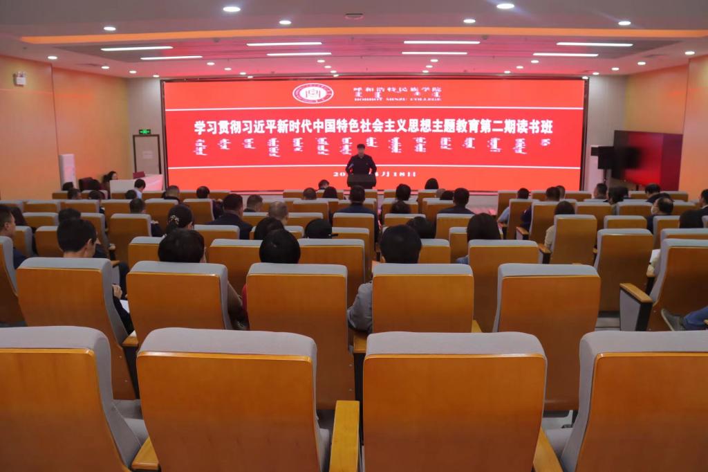 4月18日下午,鸭脖在图书馆一楼报告厅举办学习贯彻习近平新时代中国特色社会主义思想主题教育第二期读书班。学校在家领导、全体副处级以上干部参加了学习。读书班学习由党委委员、组织部部长吴阿古拉主持。