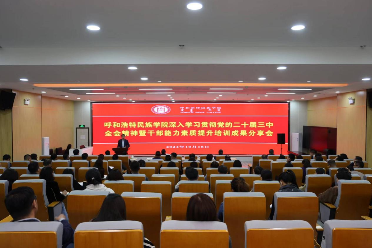 为巩固学习成效,扩大培训成果,强化“学习、思考、交流、分享、成长”的学习理念,进一步把学习成果转化为推动学校高质量发展的实际成效,10月18日,学校举办了深入学习贯彻党的二十届三中全会精神暨干部能力素质提升培训成果分享会。校党委书记刘九万出席会议并讲话,校党委副书记格根哈斯主持会议,在家校领导出席会议。全校处级干部、教研室主任代表参加会议。
