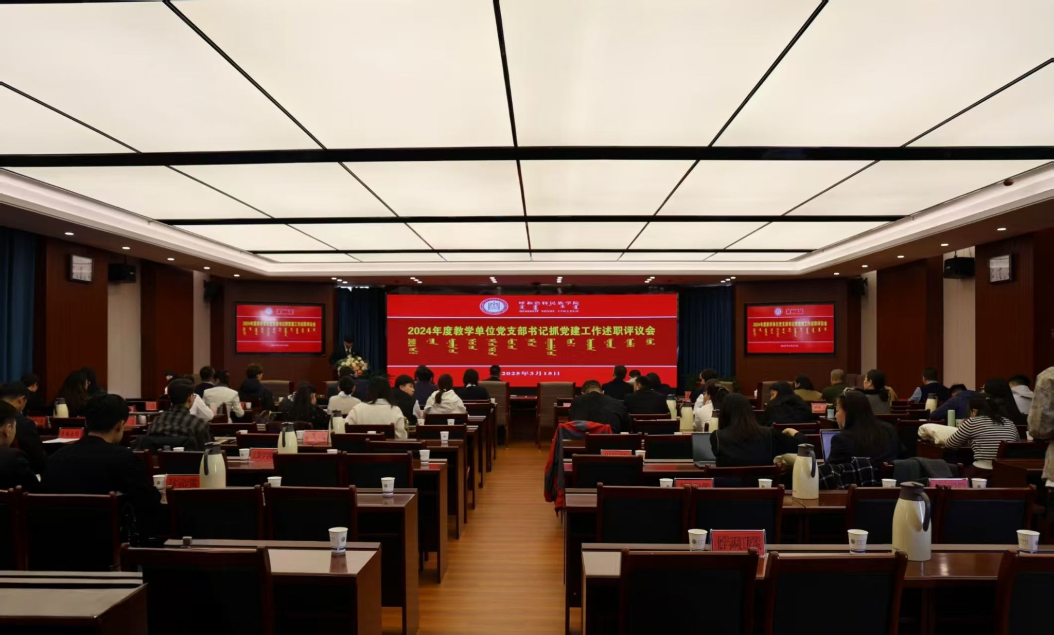为进一步压紧压实管党治党政治责任,推动党支部规范化建设,3月15日,学校召开2024年度各学院党支部书记抓基层党建工作述职评议会。校党委组织部、宣传部、统战部、教师工作部、学生工作部、纪委监察专员办公室、巡察办公室负责同志,各学院党总支书记、副书记,党支部书记、组织委员,师生代表参加会议。校党委委员、组织部部长吴阿古拉主持会议并对现场述职进行点评。