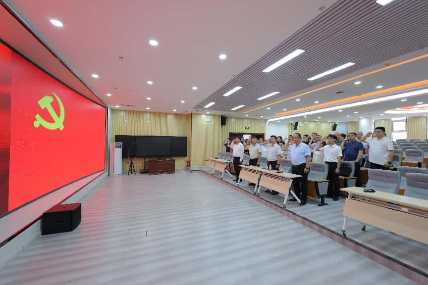 在思想政治理论课实践教育基地,党员们通过线上平台的VR全景技术,“走进”上海中共一大纪念馆。一份份承载历史记忆的档案、一幅幅记录岁月的图片,串联起中国共产党从萌芽到诞生的壮阔历程,让党员们深刻领悟“中国共产党为什么能”的初心密码。参观结束后,全体党员面对党旗,重温入党誓词:“我志愿加入中国共产党……为共产主义奋斗终身,随时准备为党和人民牺牲一切,永不叛党!”铮铮誓言,更加坚定了全体党员为实现共产主义事业奋斗终身的理想信念。